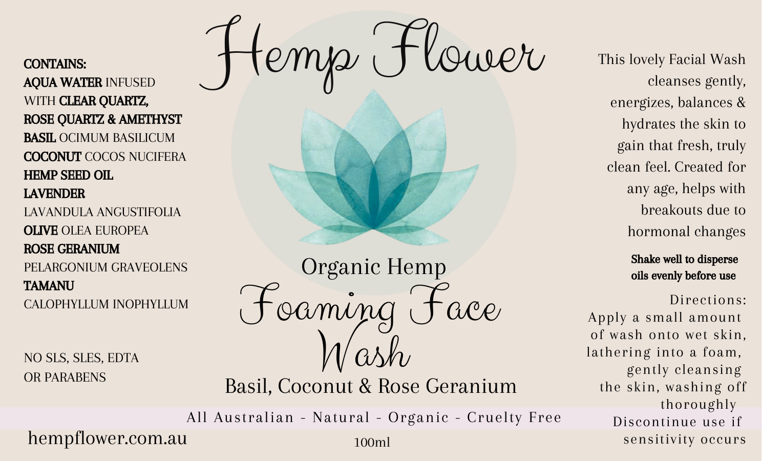 Experience a luxurious cleanse with our Foaming Face Wash. Coconut and hemp seed oil purify without stripping moisture, while lavender and rose soothe the skin. Basil and tamanu offer antioxidant benefits, leaving your skin fresh, balanced, and radiant. Ideal for a refreshing daily routine!